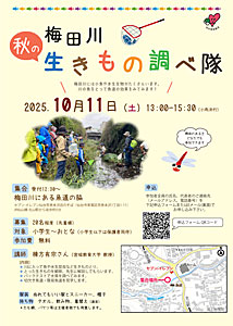 梅田川には小魚や水生生物がたくさんいます。実際に川に入って生きものをとって見てみましょう!