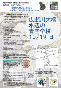 みんなで作業をして魅力ある水辺空間を考える場「水辺の青空学校」第8回は、地質学の専門家蟹澤先生と一緒に、川原の石ころを手に取り、過去・現在・未来へ思いを馳せる回です。