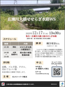 今回のイベントではせせらぎ水路の冬の維持補修活動を体験します。